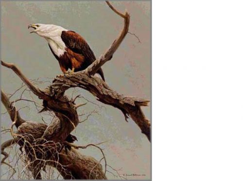 In this image, I have tried to suggest the feeling of the powerful contortions of the African fish eagle's call through the visual rhythms of the gnarled trees. - RB