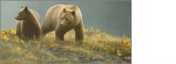 A mother and partly grown cub move along a ridge in Alaskan autumn looking for berries, mice and grubs for the final feeding which is needed for the long hibernation. - RB