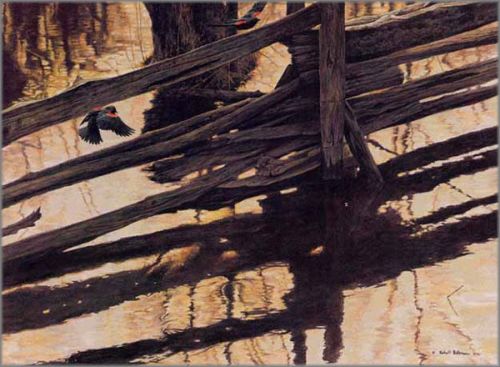 Robert Bateman - Red-Winged Blackbird and Rail Fence
