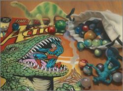 You may be either an Action Comics reader or a Godzilla fan. Do you notice that Doug painted this in such a way that the items up close are sharp and in focus and the items further away are a bit out of focus. How cool is that?