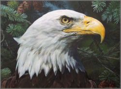 The bald eagle, without any doubt one of the most beautiful birds of prey, is a favorite subject of many wildlife artists. In Europe, we have a similar species that lives on the shores of Scotland and Scandinavia, but it lacks the beautiful white head. The thrill I got in seeing a bald eagle in the wild for the first time is difficult to describe. There is no other bird that fits so well with the colors and the light of the wild landscapes in North America. - CB