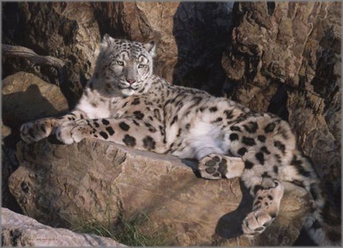 The snow leopard’s very light, beautiful, spotted fur and wonderful thick tail put it on the endangered species list. Hunted or poached for its fur (one coat requires sever cat skins), its destiny may be extinction in the near future. But there is hope. The vast habitat makes it very difficult to estimate how many are actually left. - CB