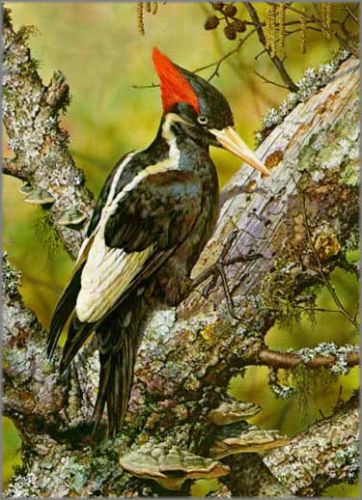 The coloration of the ivory-billed woodpecker is similar to that of the pileated woodpecker, but it has more white on its feathers and its bill is an ivory color. It is also one of the largest woodpeckers in the world. The purpose of this image is to alert people to what is happening to our natural heritage and to make them aware of the beauty of this endangered, possibly extinct, species. - CB