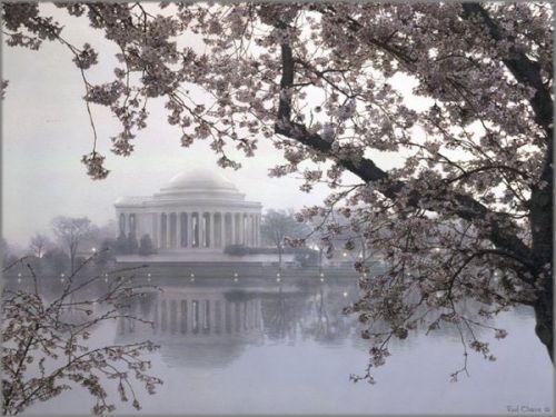 The Jefferson Memorial is seen across the tidal basin with Washington's famous cherry blossoms framing the scene. Jefferson was the only man in his day to foresee the "magnificent destiny" due our great nation. He was responsible for the Lewis and Clark Expedition which eventually led to uniting our country from shore to shore. He also saw the need to have New Orleans as a port at the base of the Mississippi River to encourage and enable commerce in the center of the nation. To that end, he negotiated the Louisiana Purchase