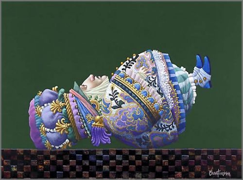 James C. Christensen - Even as He Stopped Wobbling Wendall Realized He Had a Dilemma