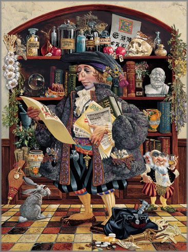 For 2,400 years, physicians have honored Hippocrates' sacred vow to treat a patient with empirical, scientific wisdom and ethical consideration. However, as James C. Christensen reveals in The Oath, not all aspects of medical antiquity have stood the test of time and Hippocrates could never have imagined some others. Just as attorneys everywhere warmly responded to the self-deprecating humor of Christensen’s image A Lawyer More Than Adequately Attired in Fine Print, we think members of the medical profession will appreciate a healthy dose of The Oath. When originally released, the print was accompanied by a decorative Hippocratic Oath suitable for framing and a key of over 60 medical references.
