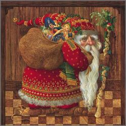 I wanted to create an image that would evoke both the history and traditions of the Christmas season. I was surprised to discover that our Christmas is not just a transplantation of old world traditions, but a synthesis of customs brought to this country by our forefathers. Our present day Santa Claus is a symbol, not only of Christmas, but represents our melting-pot society. While our Christmas character is the conglomeration of traditions of many people and lands, he has become American in the same way we have. This image is a fantasy, a personal interpretation of that "jolly old elf" that embodies not only the spirit of Christmas, but the best of America. - JCC