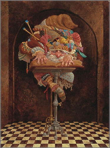 Some people see this little guy reading; others see him taking one of those catnaps where if you catch a person at it, he says, "I wasn't asleep, I was just resting my eyes." - JCC