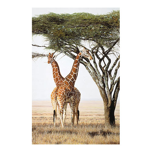 Paper. The giraffe is one of the world's most extraordinary creatures. Because of their height and exceptional eyesight, they serve as lookouts for the rest of the herd and can eat leaves that are beyond the reach of almost any other animal. They are a peace-loving bred, although they are well able to defend themselves. Any big cat who tries to attack them will think twice before attempting it again. - Simon Combes