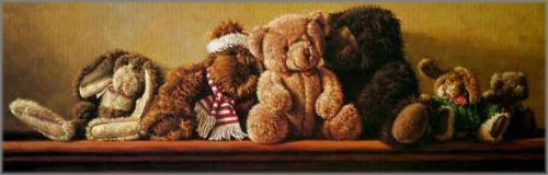 These little characters sit silently. No five-minute break every twenty-five minutes; Sometimes they have disagreements amongst themselves or someone feels left out and there's some pouting and jealousy. But, they keep each other company. - JD