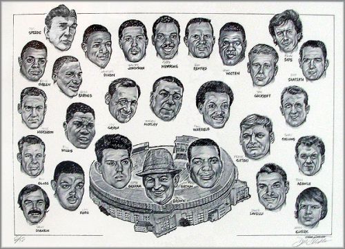 For 20 years, the artistic talents and humor of Dick Dugan were favorites of Cleveland Plain Dealer readers. His caricatures and cartoons, as well as his marvelously-detailed portraits, found their subjects in the sports, entertainment and political arenas and featured such celebrities as Liza Minelli, Bob Hope, Brian Sipe, Jim Brown, Carol Channing, Bobby Orr, the Beatles and Robert Kennedy. His works are in the permanent collections of the Football and Baseball Halls of Fame and the Eisenhower Museum. On television, Dugan appeared as the “Doodles Dugan” of the Captain Penny series.