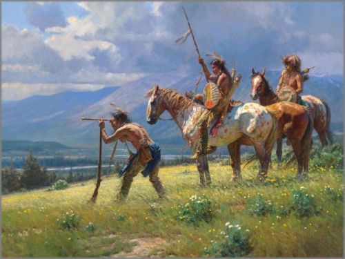 Dust in the Distance by Texas artist Martin Grelle was first exhibited at the Prix de West Invitational in June 2006. Grelle is one of only five artists to have won the coveted Prix de West Purchase Award twice, for Teller of Tales in 2002 and Two Coups in 2005.
