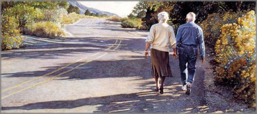 The couple has discovered a valuable secret to staying young: companionship and laughter. As they travel the mountain road together enjoying the scenery and one other’s company, their time-tested love brings them great happiness. - SH