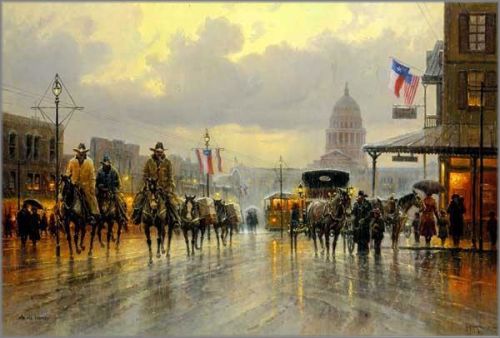As a native Texan, G. Harvey loves painting the state's capital. This piece was the cover image of his first book in 1986.