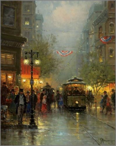 On a recent trip to New York City, the artist and his wife enjoyed attending the theater – a real treat in New York where you see the best of the best. Afterward, they realized that he had never painted the theater district at the turn of the century – an exciting, colorful scene with all the patrons dressed for a lovely evening out. And so, "The Theater Crowd" came to be.