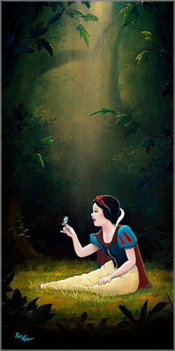 Snow White, the fairest of them all, exudes all of the wholesomeness and beauty that her name suggests in this wonderfully composed piece by Rob Kaz. The delicate light from Snow White’s inner-beauty seems to radiate outward into the darkened forest around her, paying homage to the lyrics Snow White sings to the tiny bird perched on her finger: “With a smile and a song, all the world seems to waken anew, rejoicing with you as the song is sung…”
