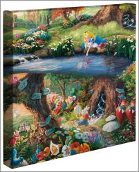 The story tells of a young girl named Alice who accidentally falls down a rabbit hole and finds herself on a curious adventure and in the presence of a number of odd and interesting characters. In 1951, Walt Disney realized a long-held ambition and brought this enchanting tale to the big screen, infusing it with his own brand of animated magic and family fun. Alice in Wonderland as illustrated by John Tenniel was exquisitely detailed in the book, while the Disney film was a modernist style with a highly saturated color palette. The Thomas Kinkade Studios painting of Disney’s Alice in Wonderland captures all the great Disney characters. The hurried White Rabbit, the enigmatic Caterpillar, the lunatic Mad Hatter, the nonsensical Tweedledee and Tweedledum all play a part in the world down the hole. There is also Alice, viewing it all with a child’s innocence and relating to it in a way that brings out the wonderment in all of us. It is with a great deal of pride that we present the Thomas Kinkade Studios painting Disney’s Alice in Wonderland inspired by the literary genius of Lewis Carroll and animated mastery of Walt Disney. - Thomas Kinkade Studios