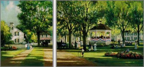 Summer excitement arrived with the first concert on the green. The harbor town bandstand could be seen and the music heard all over the village square. The townspeople, all decked out in their Sunday best, gathered together to clap their hands, tap their feet and sing their favorite melodies. The horse and carriage drivers always liked to hear the sounds while they rested in the shade of the tall, leafy trees. It was an absolute pleasure to wait for their passengers. Some just took the whole thing in stride: a simple stroll along a wide street. Or even a chance to run a hoop along a road which was quite free of motion. Others enjoyed sharing a picnic with friends, while some sat on a bench to simply listen with open ears and resting eyes. Those days must have been wonderful back then. I’m happy there are still bandstands and talented musicians for us to enjoy today. - PL