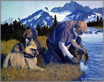 As Alaska's preeminent artist, Fred Machetanz traveled a long trail from his first one-man show in 1961. His paintings and stone lithographs have been exhibited around the world, included in numerous permanent collections and published in three books. His awards range from 1977 Alaskan of the Year and a seat in the Alaska Press Club Hall of Fame to three honorary doctorates, including one in humane letters from The Ohio State University, his alma mater. He pictured the Alaska he first encountered in the village of Unalakleet. It was there that he first established a bond with the land and its people that lasted nearly 50 years. He died in 2002 at age 94.