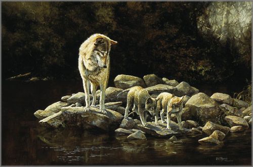 There is no better parent than a wolf. While the pups are growing up, they are showered with care and affection from both parents, as well as from the other adult members of the pack. Long hours of carefree play, ear tugging and chewing and group howls are enjoyed by all.