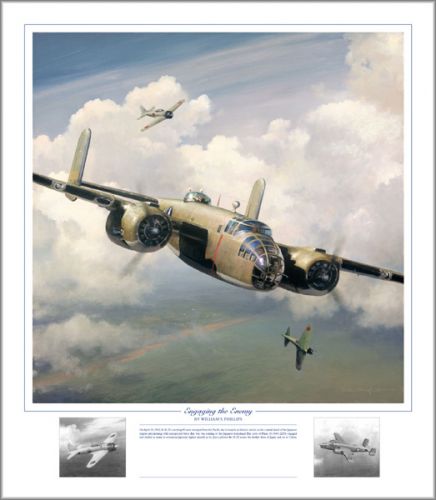 Sixty-nine years later, only five of the original 80 airmen that flew on the Doolittle Raid on Japan remain. Just enough to man a single B-25, one last crew. Time has been kind and granted you the opportunity to own an authentic piece of Doolittle Raider history, but that door is closing. The print and canvas editions of Engaging the Enemy will be signed by the actual Raiders attending their 69th reunion.