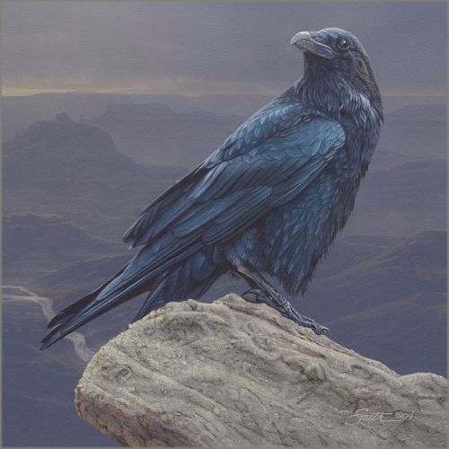 The raven is one of the principal birds of the Grand Canyon, known for its lofty aerial acrobatics and the clever raiding of backpacks for food. The raven is also regarded as having one of the finest brains of the bird world and a trickster’s sense of humor.