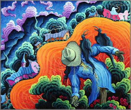 Canvas. If you were the scarecrow, would you see yourself as little more than an empty shirt on a set of cross-members? Or would you see yourself as guardian of one of the most beautiful places on earth, New Mexico's Valle Vidal? We have the choice to be stewards of those around us by breathing life into them. The birds on the scarecrow sing a symphony of the inner beauty found in each of us. The flowers are life springing up around us as we reach out to others. In knowing your purpose in life, you really do come to life.